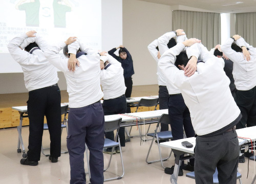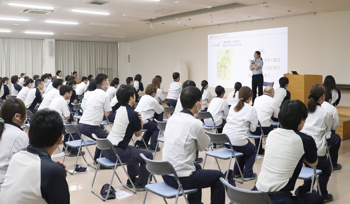 内容がつまらない。やらされ感がある。と言った意見が多かったですね。実際直近の健康診断結果から各部署で数名出席してもらうなど強制的だったと反省しました。2025年はいきなり数値の改善を目指すより、まずは健康への興味の底上げを目的にテーマを「健康経営の認知拡大とイメージアップ」としました。そこで、最初の取り組みで全員参加で行った足腰強化の運動プログラムが楽しかったと好評いただきました。この日の内容が呼び水となり、以降のプログラム内容も肩こりや腰痛などの日頃みんなが気になっている内容を用意し、所要時間も1回15~30分程度で2日間の開催期間中だったらいつでも気軽に参加できるようにしました。また、開催告知の案内方法も今までは所属長から案内してもらっていましたが、全社メールで全員に直接配信することで見てもらいやすくしたり、食堂に設置されているデジタルサイネージで告知するなど工夫しました。さらに社長が健康に積極的なこともあって、月に1度の動画による社長メッセージの配信でも健康への取り組みについて触れていただけるのも効果的でした。