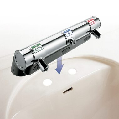 既存の水栓を取り外した後の穴を利用して取り替えます。