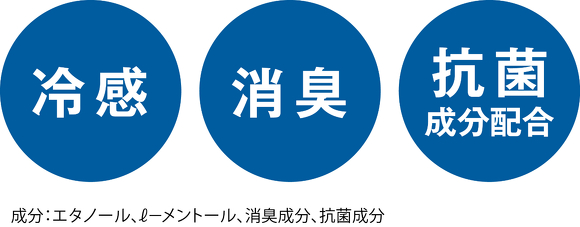 | 成 分 | エタノール、ℓ-メントール、消臭成分、抗菌成分 |