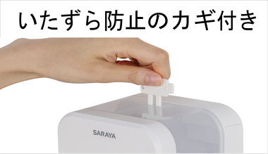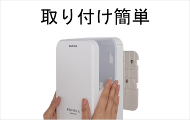 センサー感知、ノータッチで石けん液や消毒液が吐出・噴射します。カギ付き。