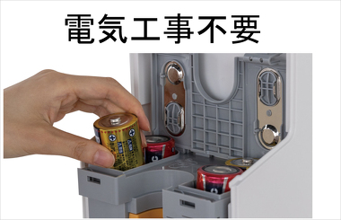 壁付けと専用スタンドへの設置方法と、乾電池とAC アダプターの給電方法で、さまざまな設置場所でご使用いただけます。