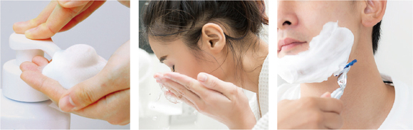 なめらかで滑りのよい泡は、手洗い用だけでなく、洗顔・メイク落としやシェービングにもお使いいただけます。
