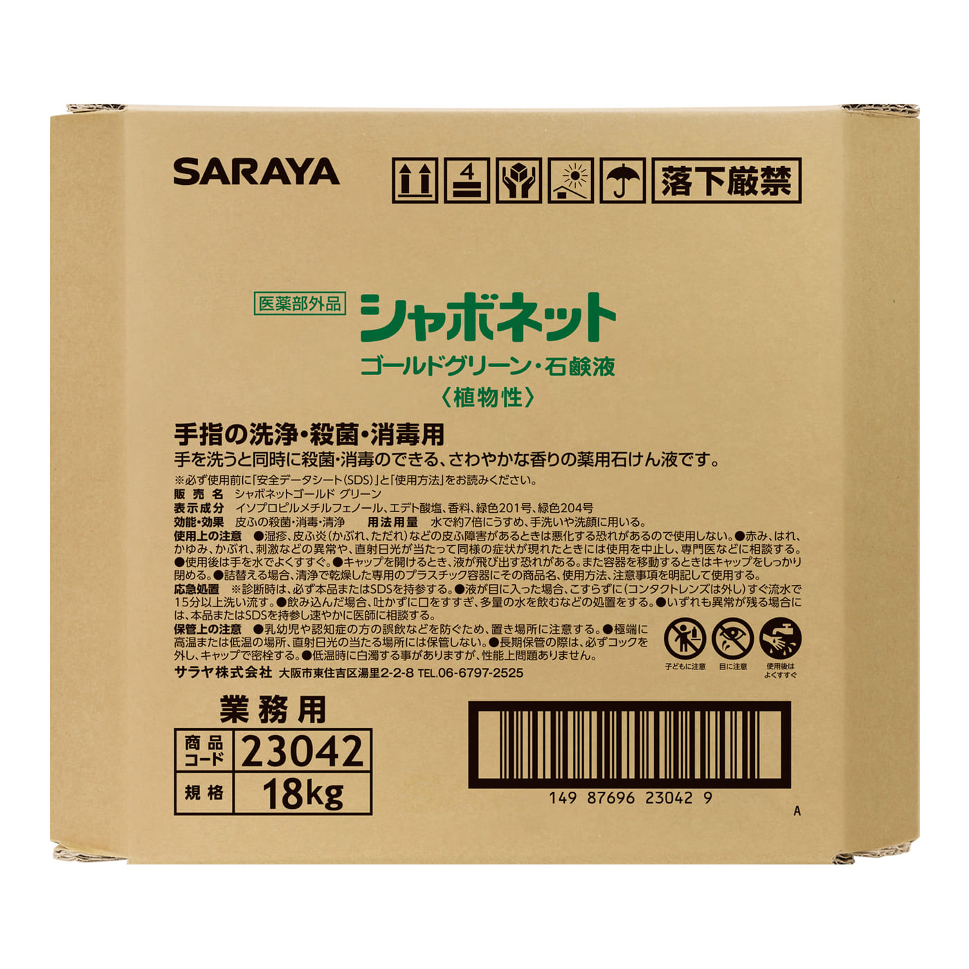 香料配合タイプ。殺菌・消毒ができる、高級感を演出した緑色の石けん液です。希釈使用。