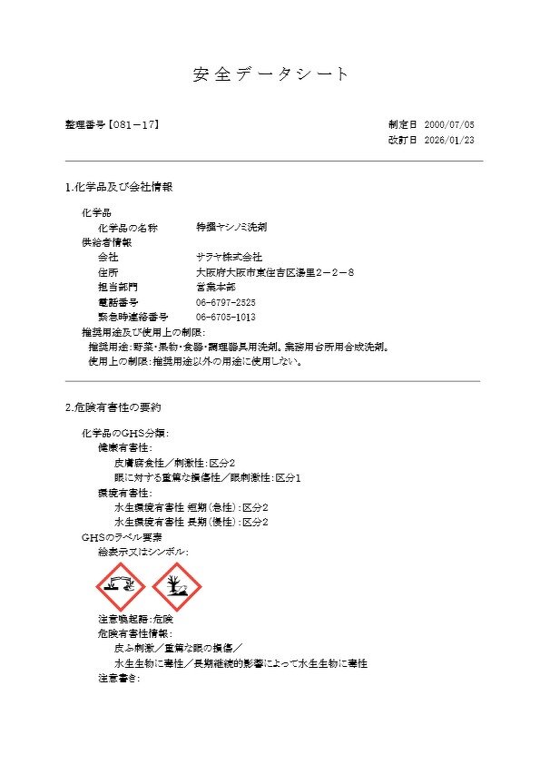 特撰ヤシノミ洗剤(SDS)