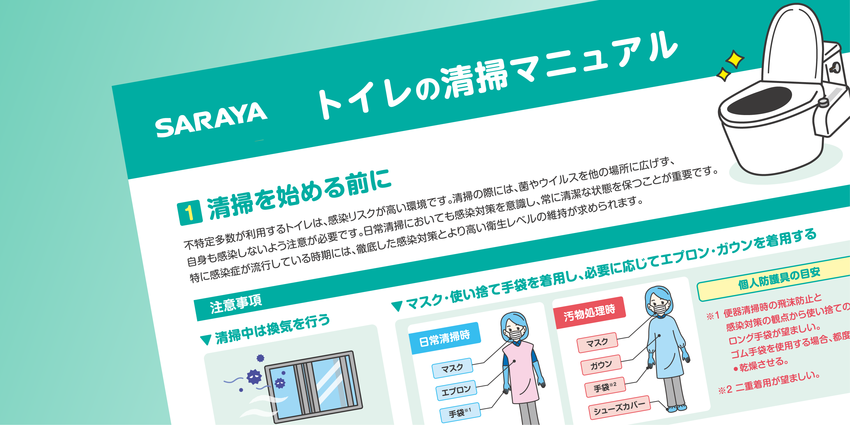 トイレを清掃・除菌して環境を清潔にし、感染リスクを低減しましょう。